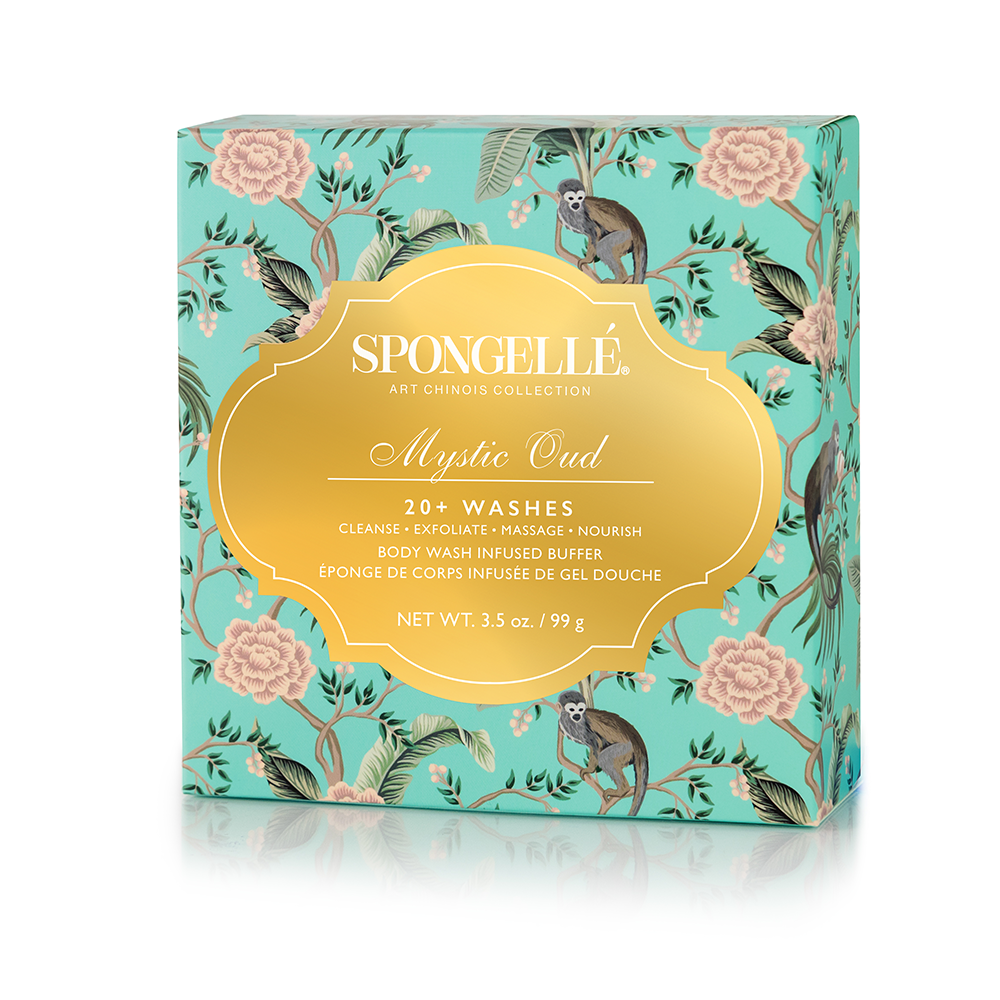 Discover historys rich style of exotic art and the elaborate decor of the 17th century. Animal motifs dance among lush fragrances creating a masterpiece designed for the ultimate pampering experience. Spongelles Art Chinois in Mystic Oud Body Wash Infused Buffer cleanses, exfoliates, massages, and nourishes your skin in the sultry aroma of bergamot, carnation, and oud.