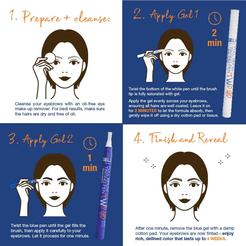 Achieve flawless, natural-looking brows in just a few simple steps! Our 2-step system makes it incredibly easy to tint your brows at home - no mess, no fuss. In only 3 minutes, you'll have beautifully defined brows that last.