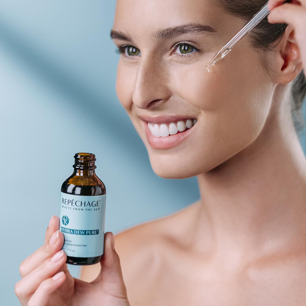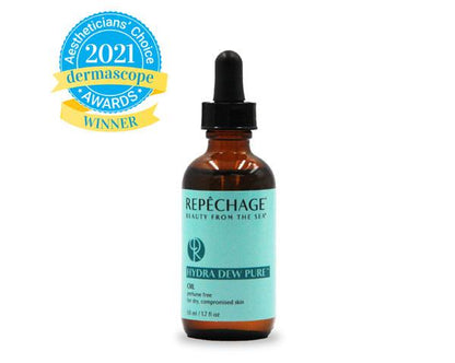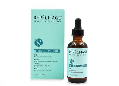 The Repechage Hydra Dew Pure Oil is a facial oil that has won awards for its unique formula. It contains pure Laminaria Digitata seaweed extract, Mastic Oil from Chios Island, Organic Cannabis Sativa Seed Oil, and Camellia Japonica Seed Oil. This combination helps to restore the skin's natural moisture barrier, resulting in soft and smooth skin.