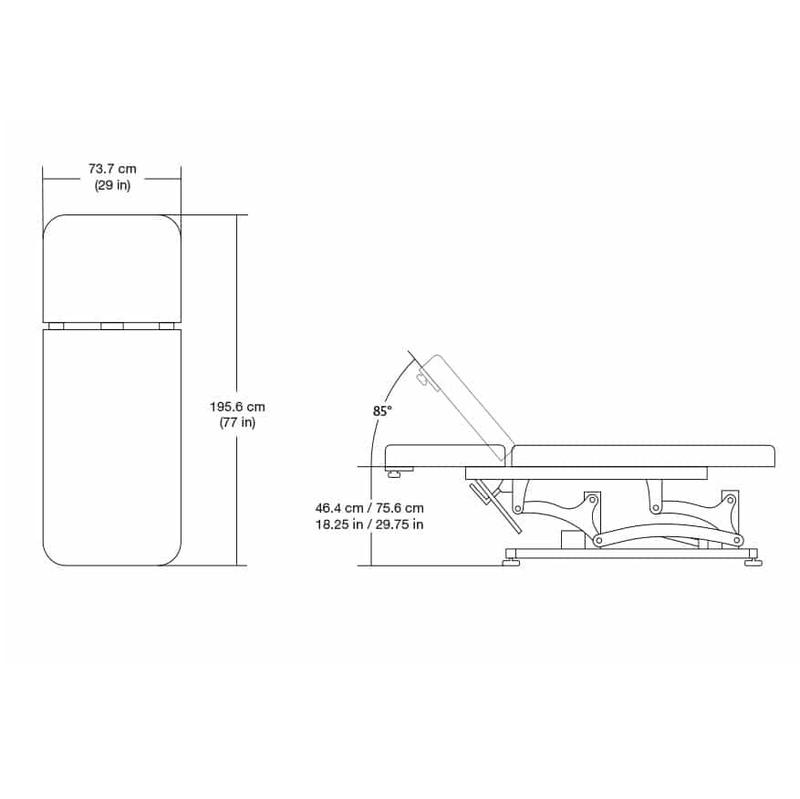 • Height adjustment via an electric motor: min. 18.25” (46.4 cm), max. 29.75” (75.6 cm)