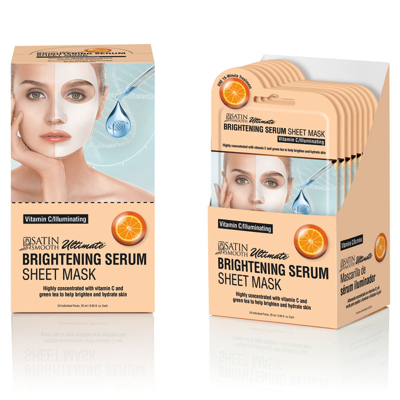 Naturally Enriching Blend: The Satin Smooth Brightening Serum Sheet Mask Vitamin C/Illuminating features a gentle yet effective water-based serum formula. Infused with the wholesome goodness of Green Tea and Vitamin C which work together to deliver protective antioxidants. Features the added benefits of Niacinamide, Panthenol, and Hyaluronic Acid that deeply hydrate and soothe the skin that leaves you with a refreshed and glowing complexion!