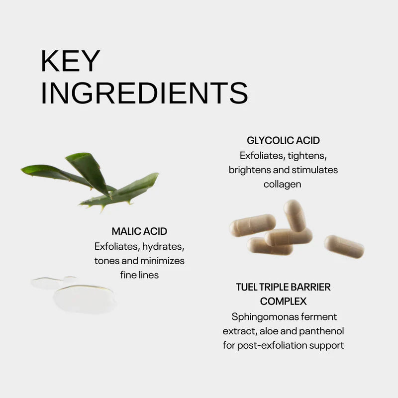 AHA Moment—our next-gen exfoliating gel that combines the resurfacing power of glycolic acid with the hydrating brightness of malic acid. Soothing aloe and strengthening panthenol round out the formula to give skin a gentle yet effective reset.
